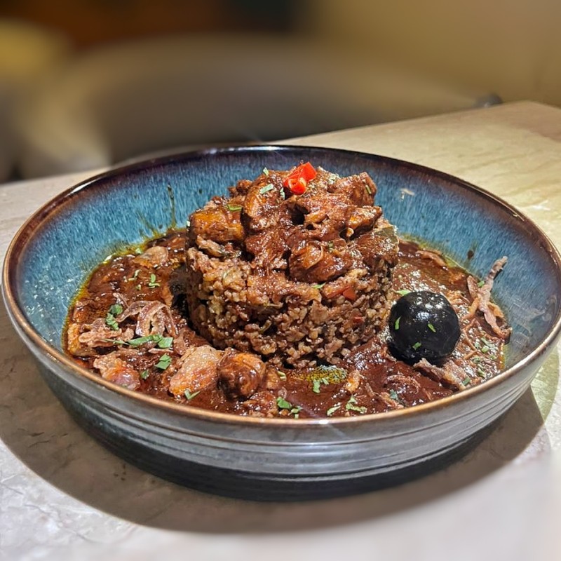 (524 سعرة حرارية)أرز الحب الكامل الأسمر من مزارع الأحساء المعد مع لحم الخروف الطازج
